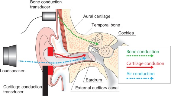 بسته به اینکه کدام قسمت از این سه قسمت گوش آسیب دیده باشد، آستانههای راه هوایی و آستانههای راه استخوانی به صورت مشابه یا متفاوت از هم تغییر میکنند. به عنوان مثال، اگر آسیب در گوش خارجی و یا میانی باشد و گوش داخلی سالم باشد، وقتی صدا از طریق هوا (هدفون) ارایه شود، چون در مسیر انتقال صدا (گوش خارجی و میانی) مشکل وجود دارد، آستانههای راه هوایی تغییر میکنند و کم شنوایی در آستانههای راه هوایی مشاهده میشود.